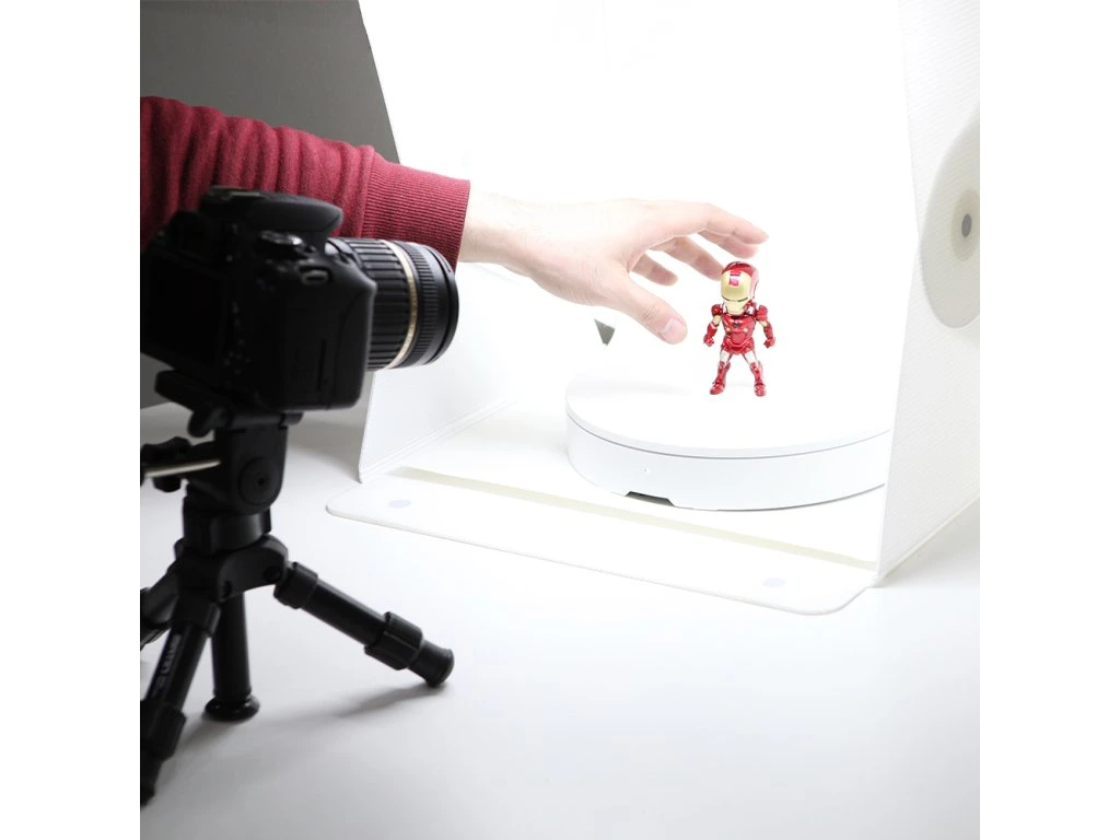 A Foldio360 egy intelligens forgó eszköz, amely lehetővé teszi 360 ° -os fényképek készítését okostelefon vagy DSLR fényképezőgép használatával, akár amatőr, akár profi fotós.